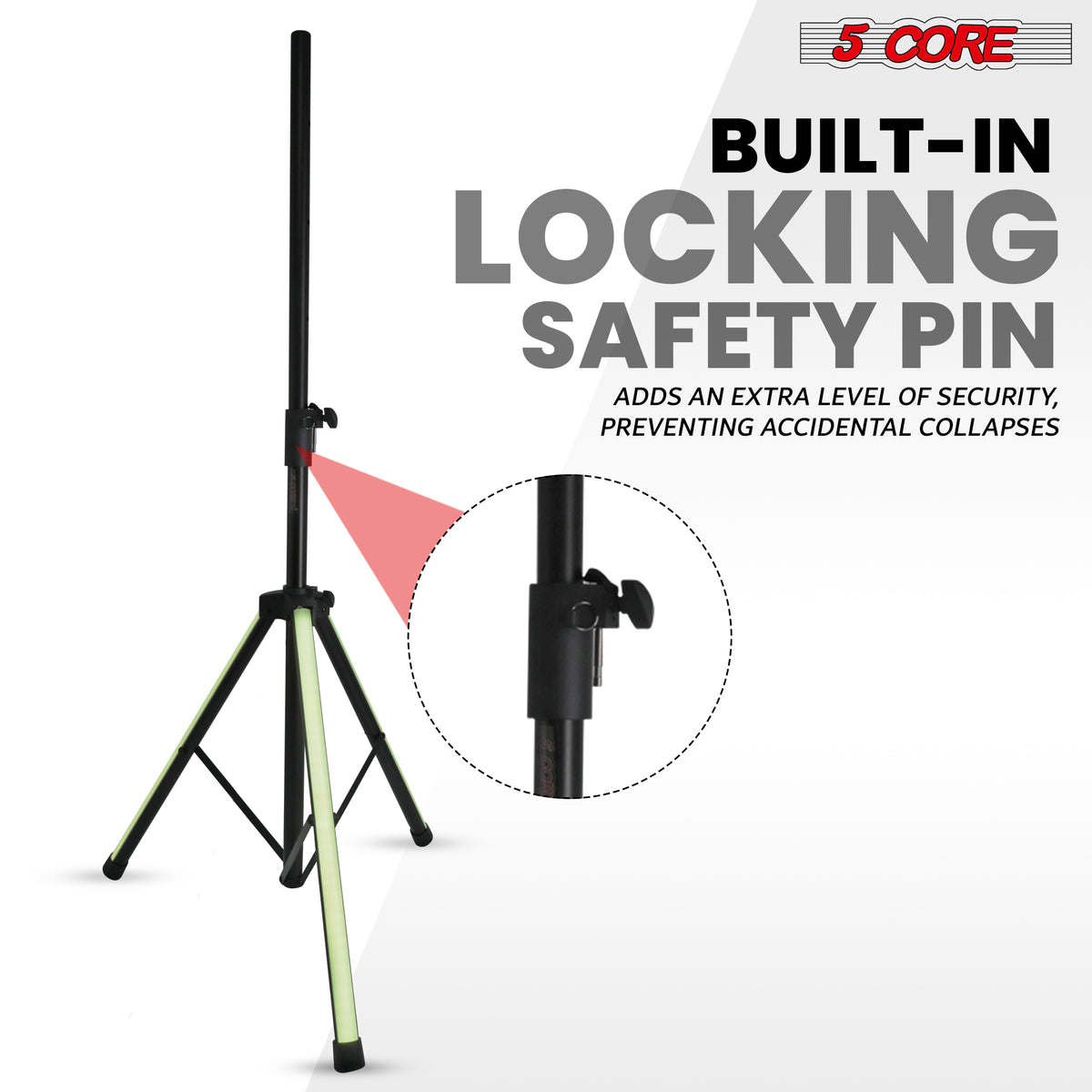 LOCKING SAFETY PIN | ON STAGE OR STUDIO USE | TENSION LOCKING | NON-SLIP FEET |