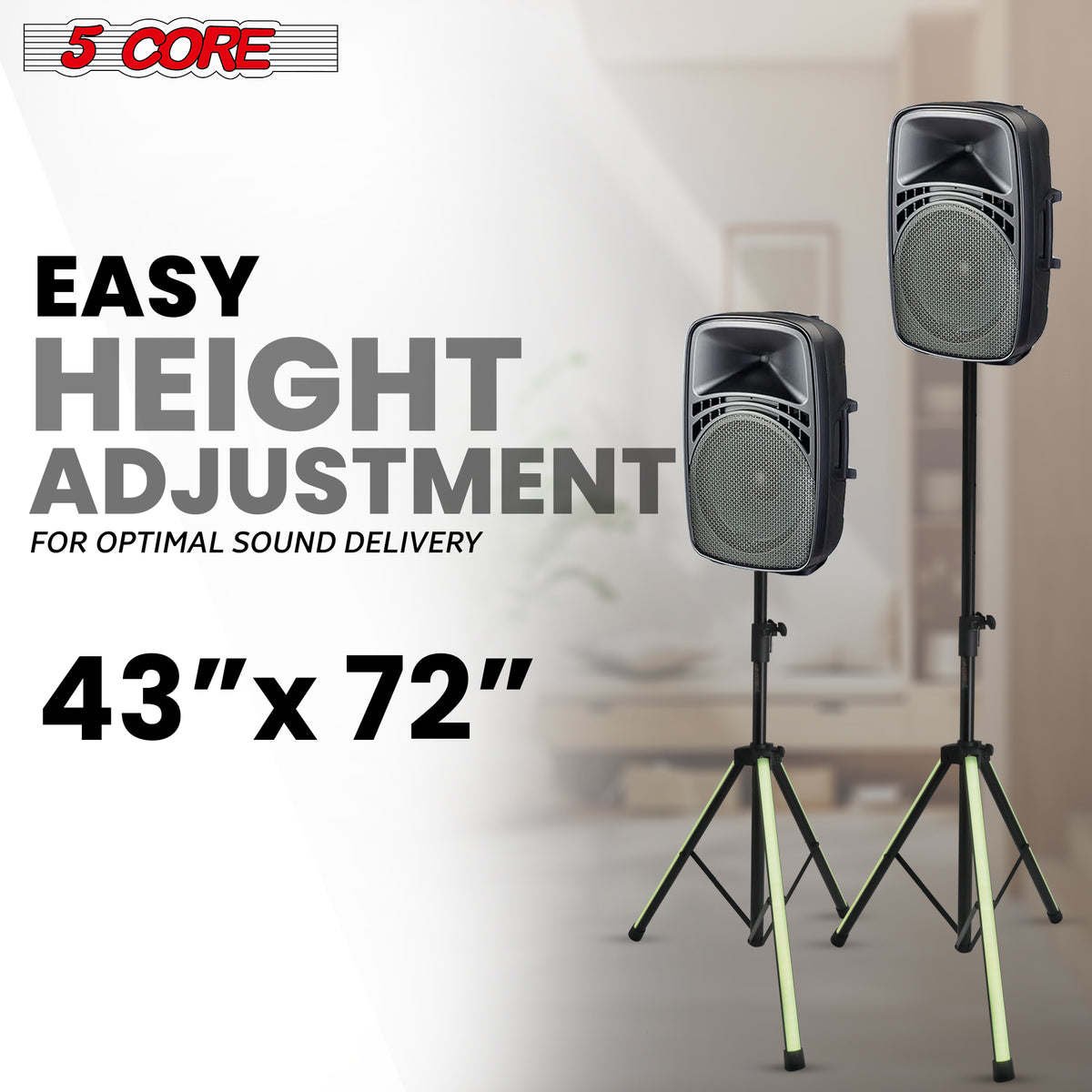 Height adjustable DJ Speaker Tripodfrom 40 to 72 Inches for optimal sound projection and coverage.