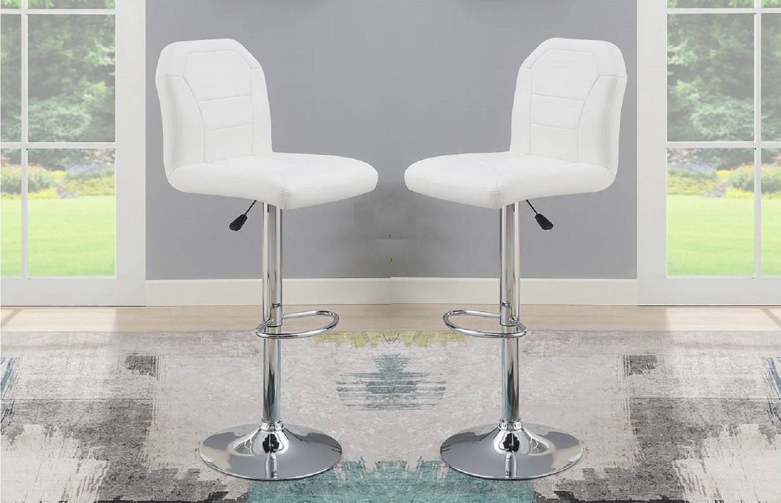 Home > Adjustable Bar stool Chair White Faux Leather Clean Lines Seat Chrome Base Modern Set of 2 Chairs / Bar Stool Dining Kitchen
