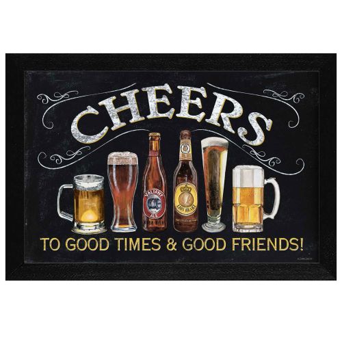 DEW291-276 "Cheers" is an 20"x14" art print framed in black of the art of American artist Debbie DeWitt. It shows an assortment of beer bottles and mugs with a script message, "Cheers! To good times and good friends". Our products are proudly made by skilled American workers. The surface of our framed art is textured with a fade resistant coating, so no glass is necessary. A vegetable-based glue is used in the production of our products, and our frames are crafted from 100% recycled material. In keeping with our environmentally friendly approach toward manufacturing. •Print has fade resistant surface texture, no glass is necessary•Woman Owned Business (WBE)•Arrives ready to hang, no additional hardware needed on item•Individually hand crafted by skilled American workers•Clean with Soft Dry Cloth Only