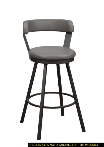 Perfectly styled for your casual dining space is the Appert Collection. This 29-inch pub height chair offering features a dark gray metal base that serves to support the gray faux leather round swivel seat. Allowing for perfect placement within your space, the Appert Collection is offered in a 24-inch counter height and 4 additional colors – brown, black, red and white.