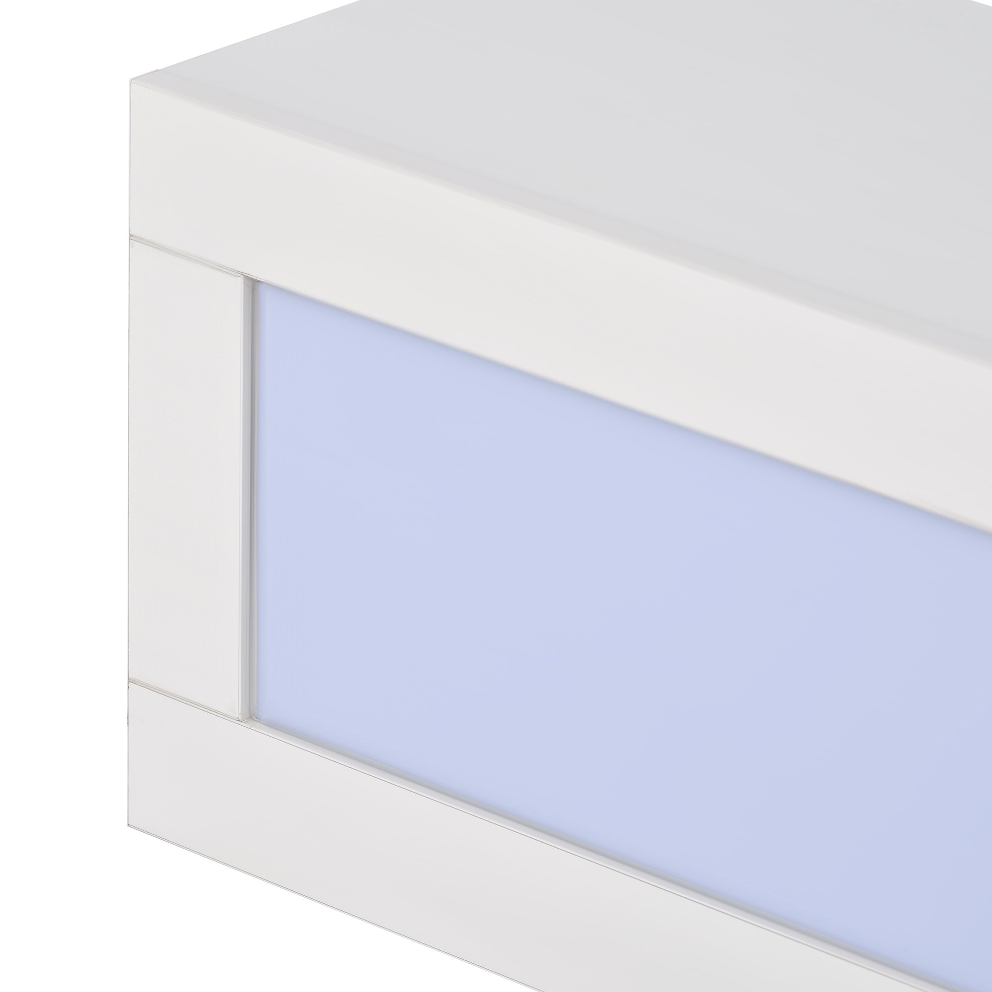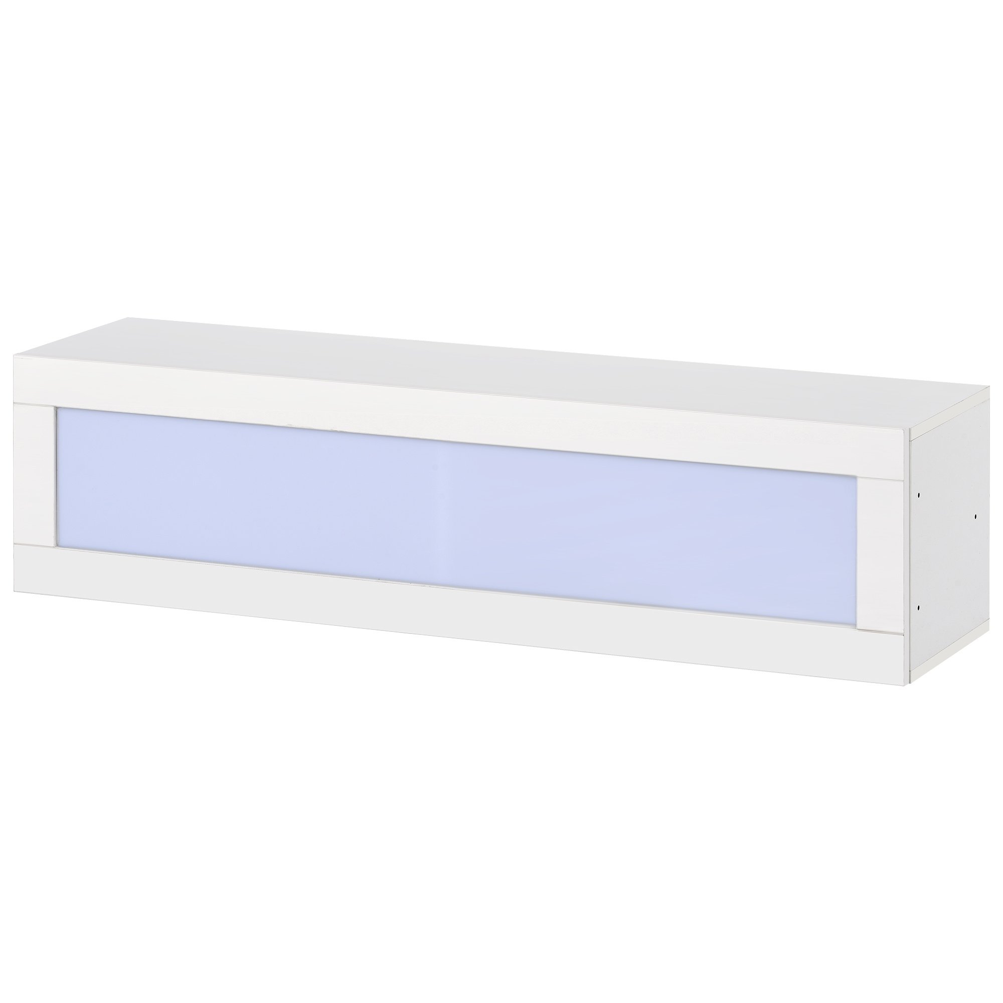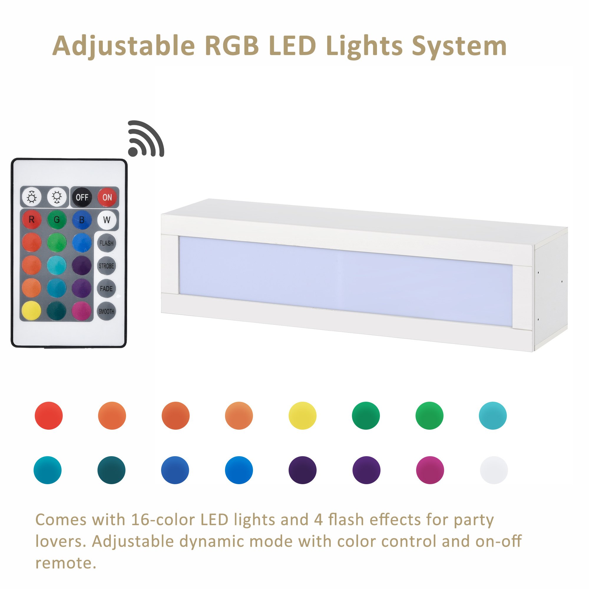 Product TypeFloating Entertainment CenterTop ShapeRectangleTop ColorWhiteTop MaterialMDFTop Finish ApplicationVeneerBase ColorWhiteBase MaterialMDFBase Finish ApplicationVeneerBuilt-In LightingYesWeight Capacity277.2lbsShelves IncludedYesNumber of Shelves2Cabinets IncludedYesNumber of Cabinets4Country of OriginChinaTable Top Thickness0.59inch