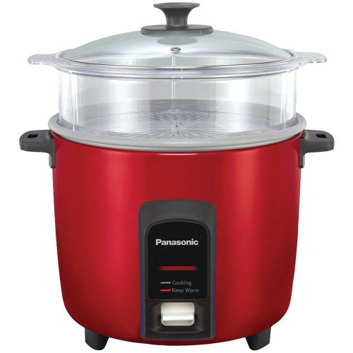 12-cup rice capacity; 2-dish separator; Keep-warm function for up to 5 hours; Cooks rice & steams vegetables, fish & meats simultaneously ; Durable, anchor-coated nonstick inner cooking pan eliminates sticking & evenly distributes heat for faster cooking & more uniformly prepared rice; Quick cleanup with smooth, nonstick inner & outer coatings; 1-touch controls; Stay-cool handles; Includes steaming basket, nonstick coated pan, measuring cup, scoop, 2-dish separator & see-through glass lid; Red;