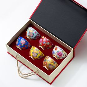Porcelain Tea Tasting Cup Gift Box Chinese Style (Option: 6 Peony Cups)